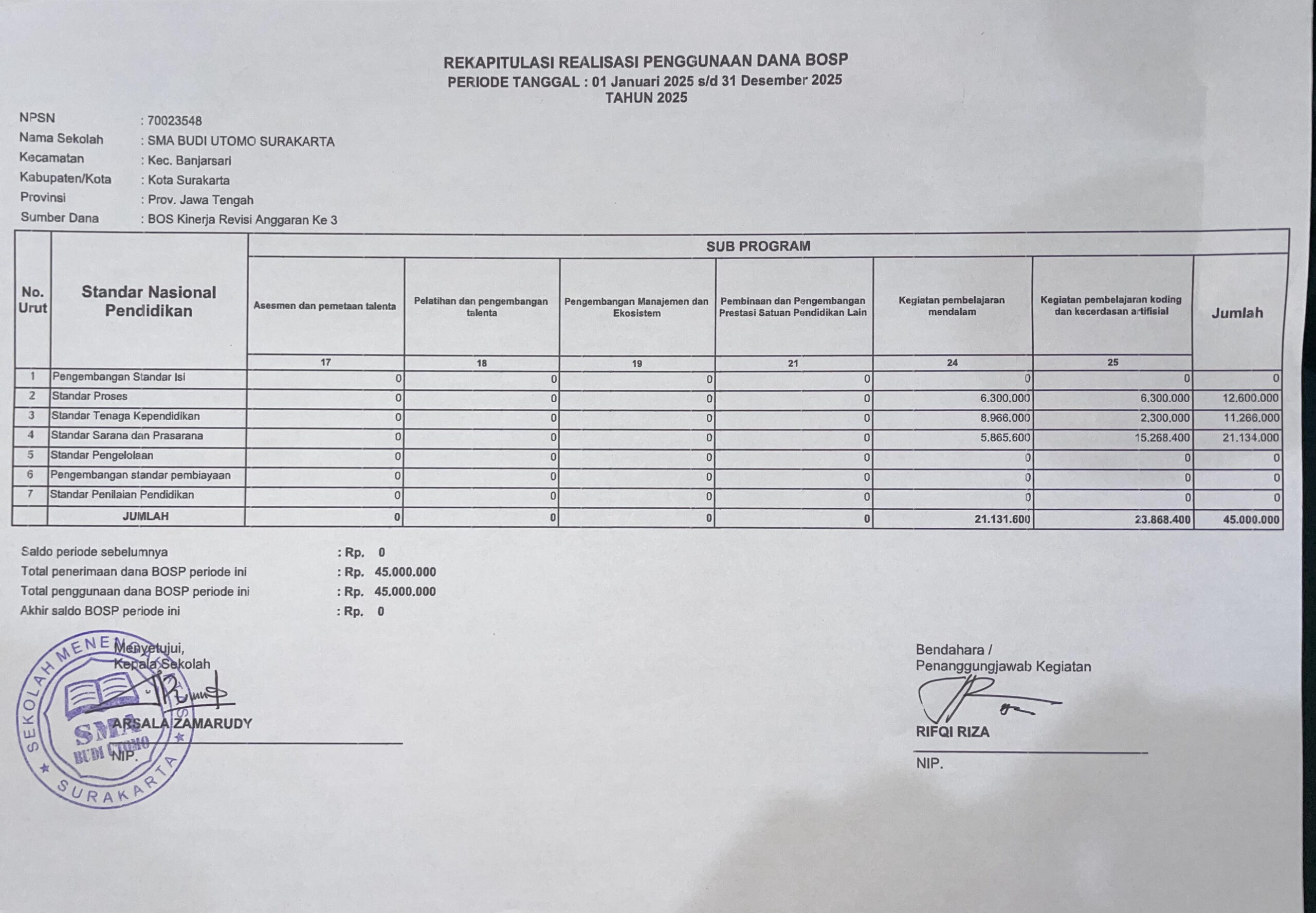 REKAPITULASI REALISASI PENGGUNAAN DANA BOS KINERJA TAHAP II TAHUN 2025 SMA BUDI UTOMO SURAKARTA